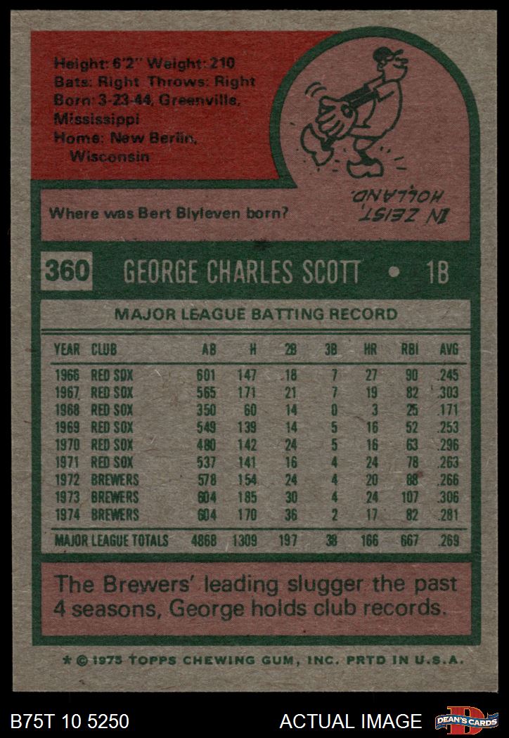 1975 Topps #360 George Scott 6 - EX/MT