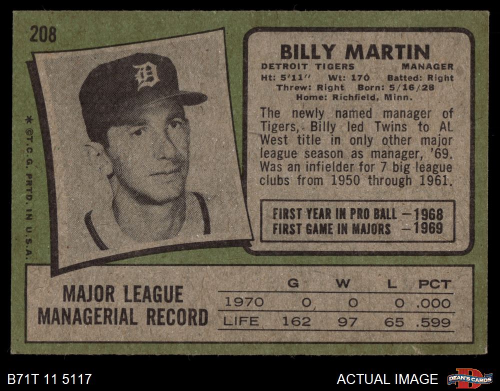 1971 Topps #208 Billy Martin 6 - EX/MT