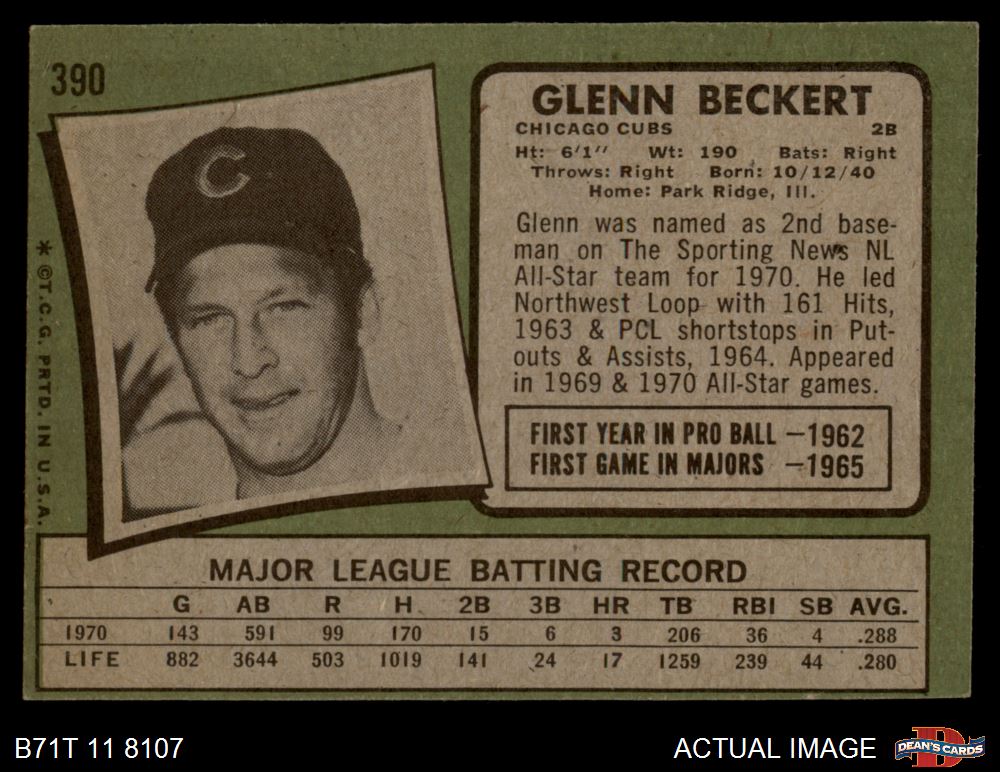 1971 Topps #390 Glenn Beckert 4 - VG/EX