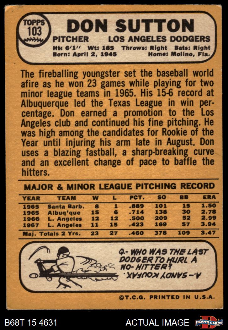 1968 Topps #103 Don Sutton
