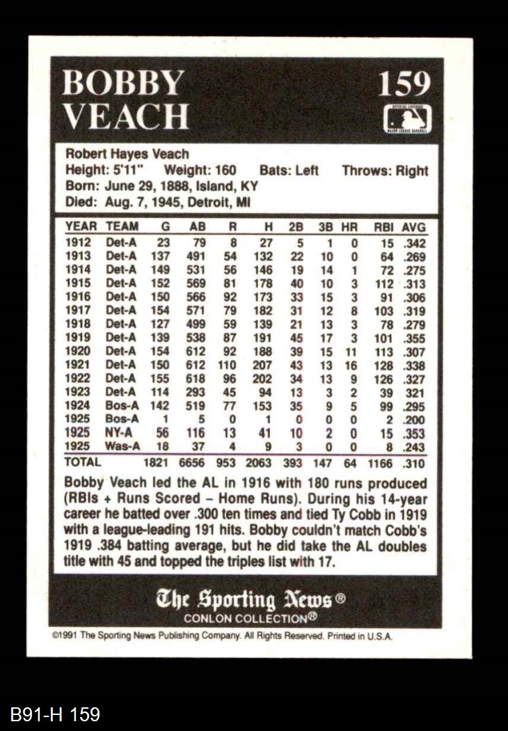 1991 Conlon #159 - Bob Veach 1916 League Leaders 8 - NM/MT