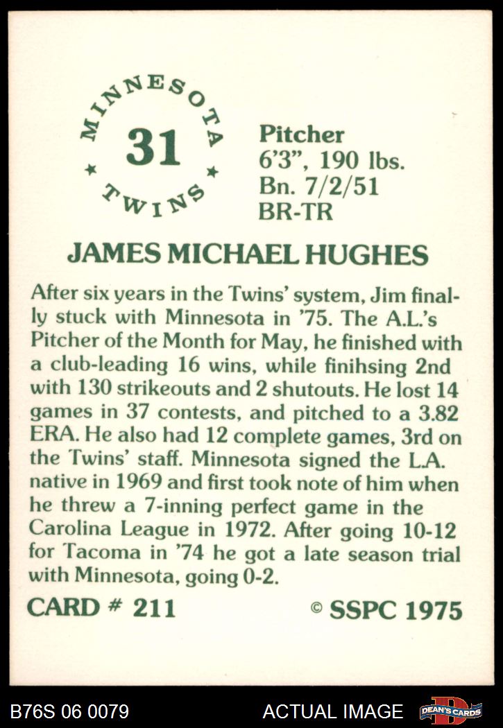 1975 SSPC #211 Jim Hughes 7 - NM