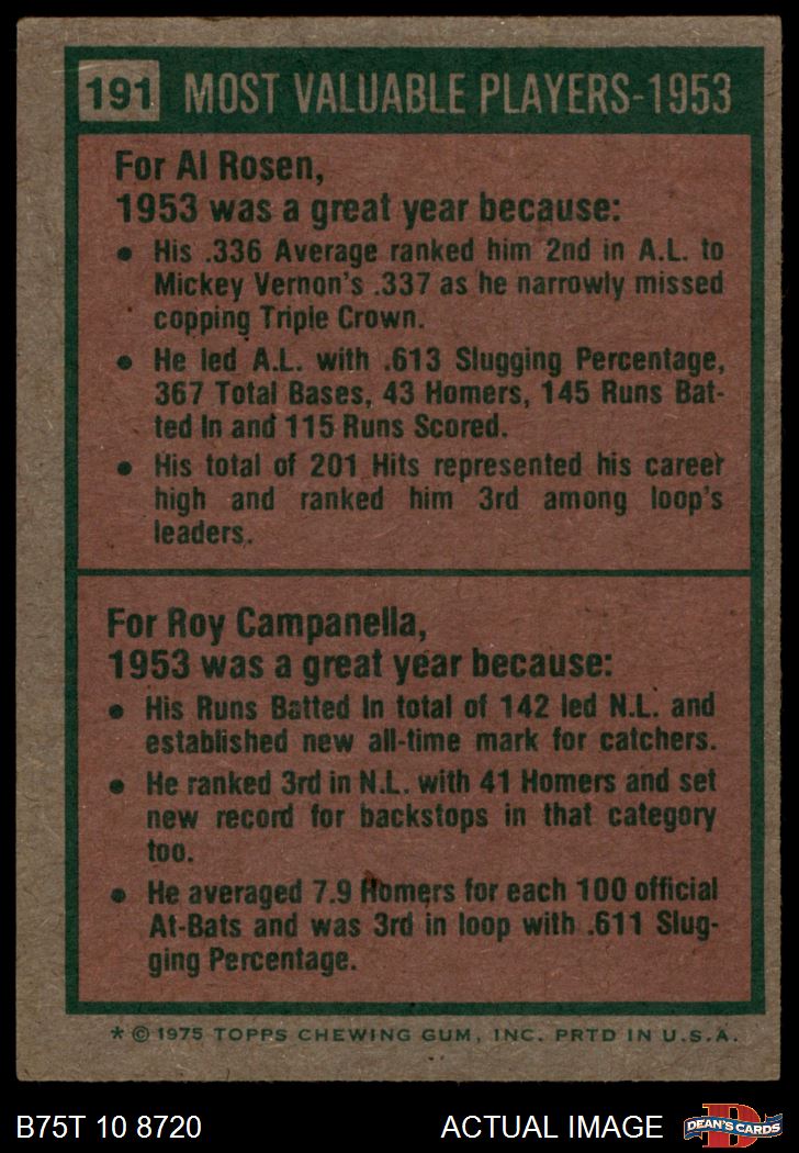 1975 Topps #191 - Roy Campanella / Al Rosen 1953 MVPs 2 - GOOD