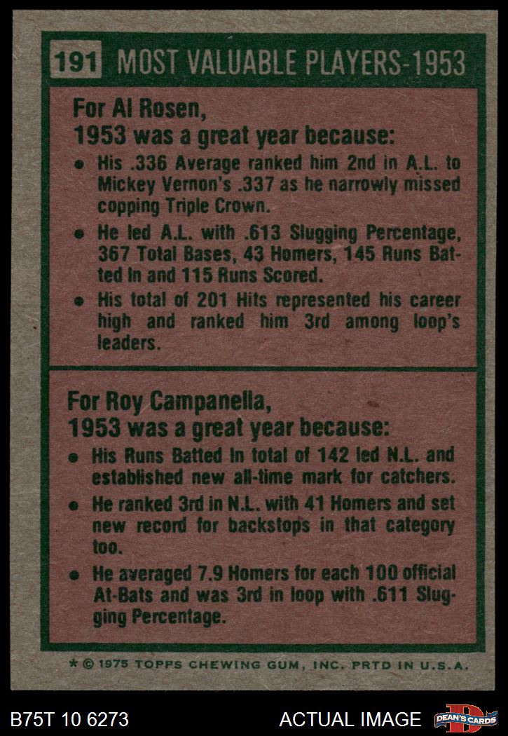 1975 Topps #191 - Roy Campanella / Al Rosen 1953 MVPs 6 - EX/MT