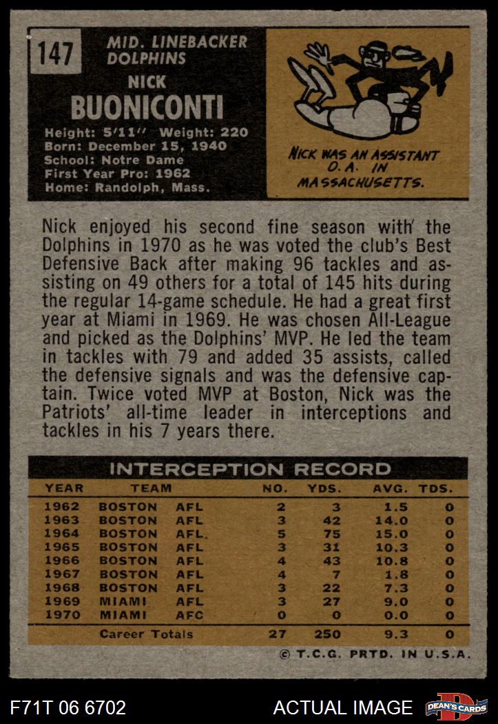 1971 Topps #147 Nick Buoniconti 3 - VG