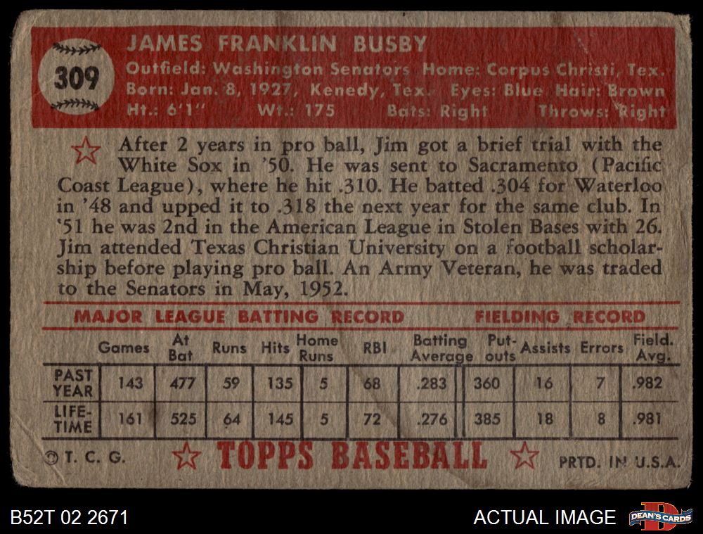 1952 Topps #309 Jim Busby 1 - POOR