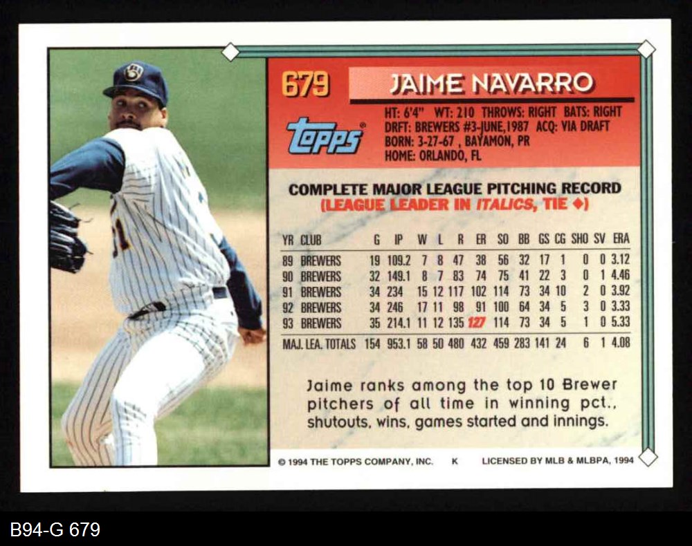 1994 Topps #679 Jaime Navarro