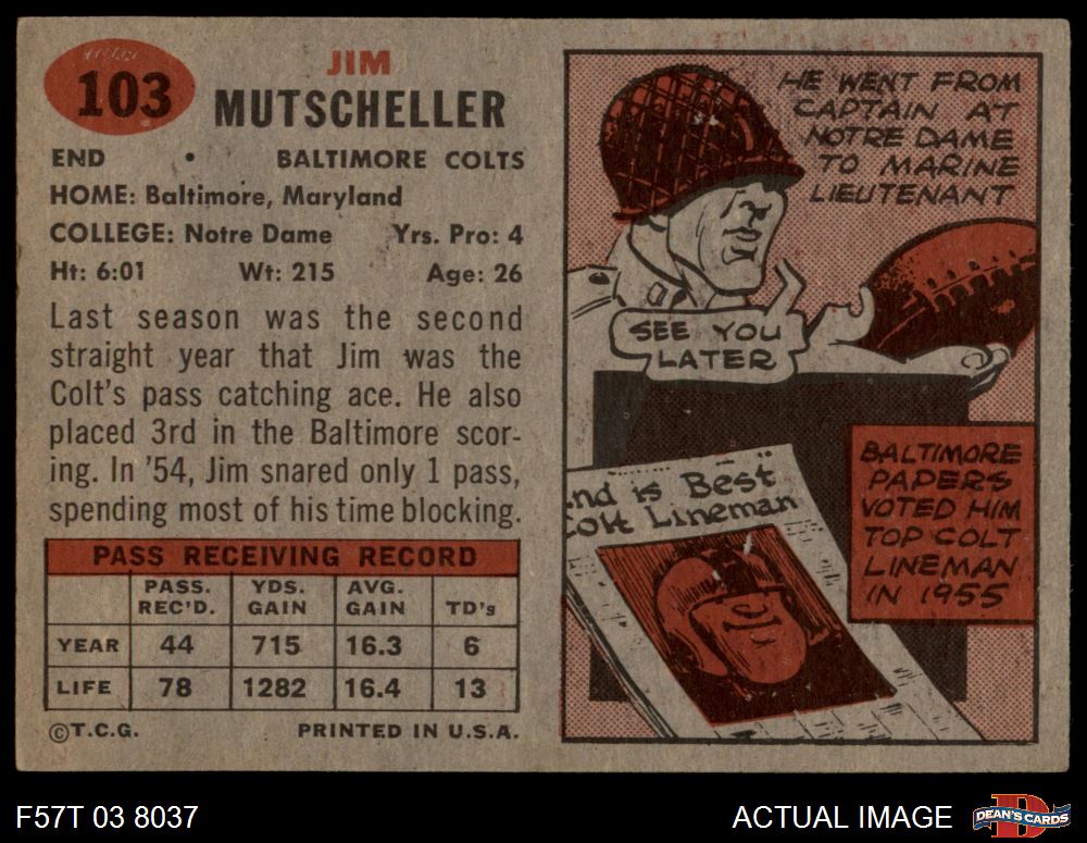1957 Topps #103 Jim Mutscheller
