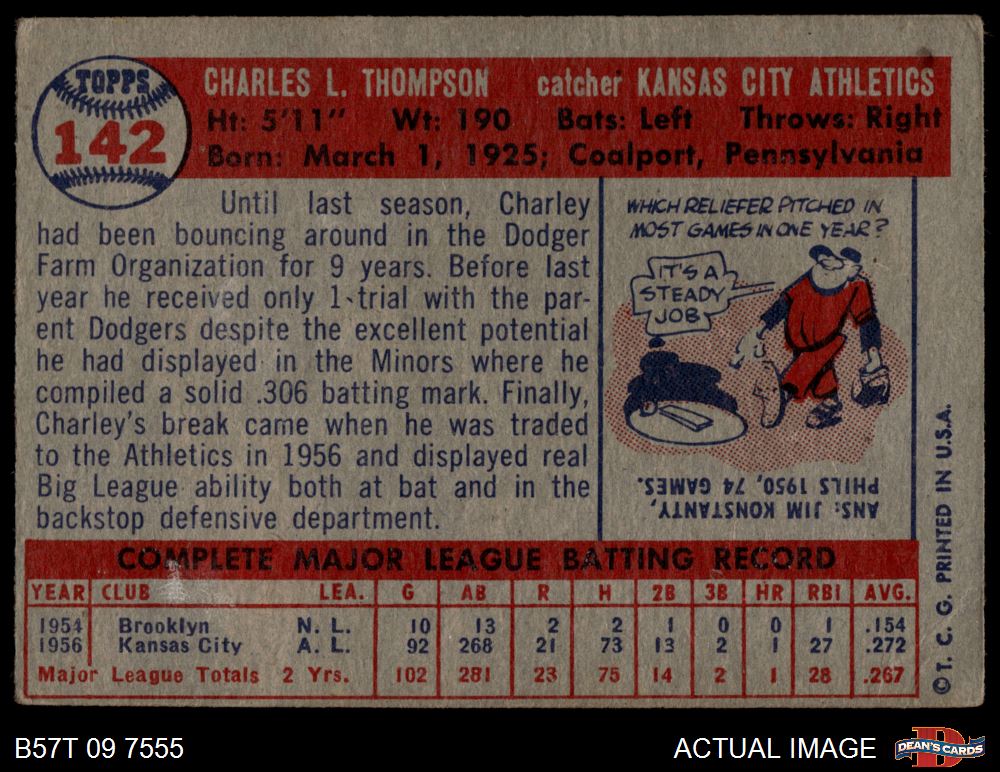 1957 Topps #142 Charley Thompson 2 - GOOD