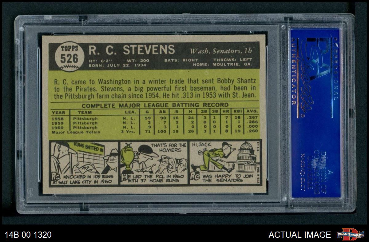 1961 Topps #526 R.C. Stevens PSA 7 - NM