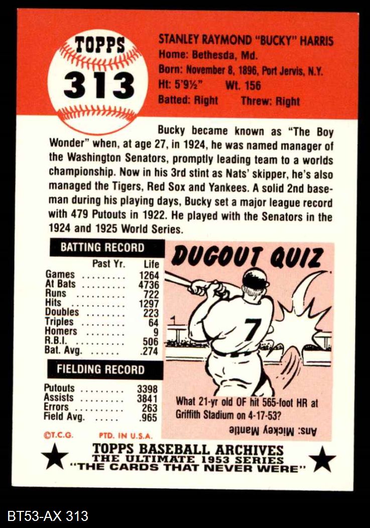 1953 Topps Archives #313 Bucky Harris 8 - NM/MT