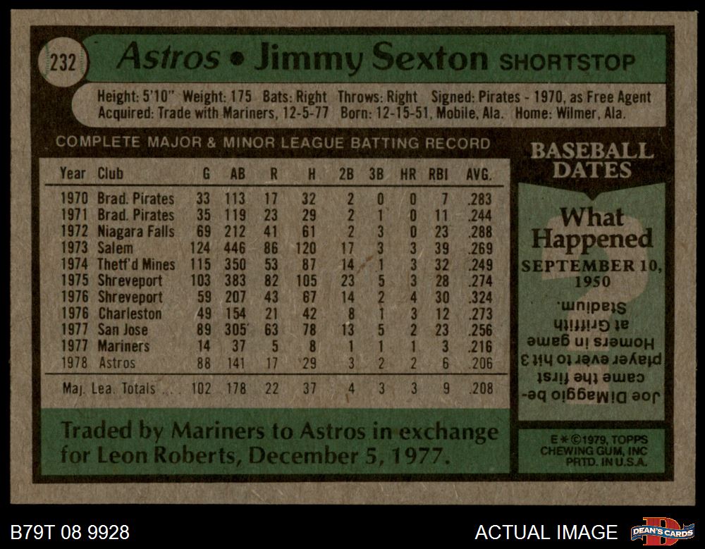 1979 Topps #232 Jimmy Sexton