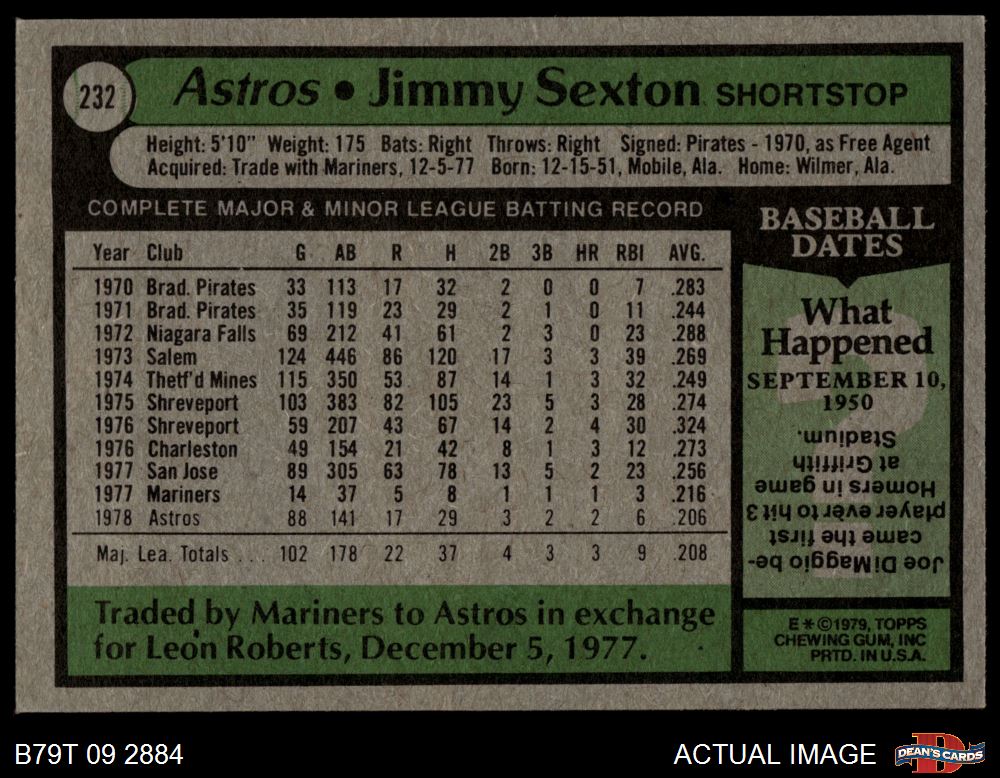 1979 Topps #232 Jimmy Sexton 5 - EX
