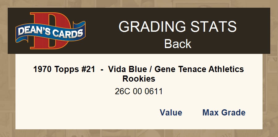 1970 Topps #21 - Vida Blue / Gene Tenace Athletics Rookies BVG AUTOGRAPHED