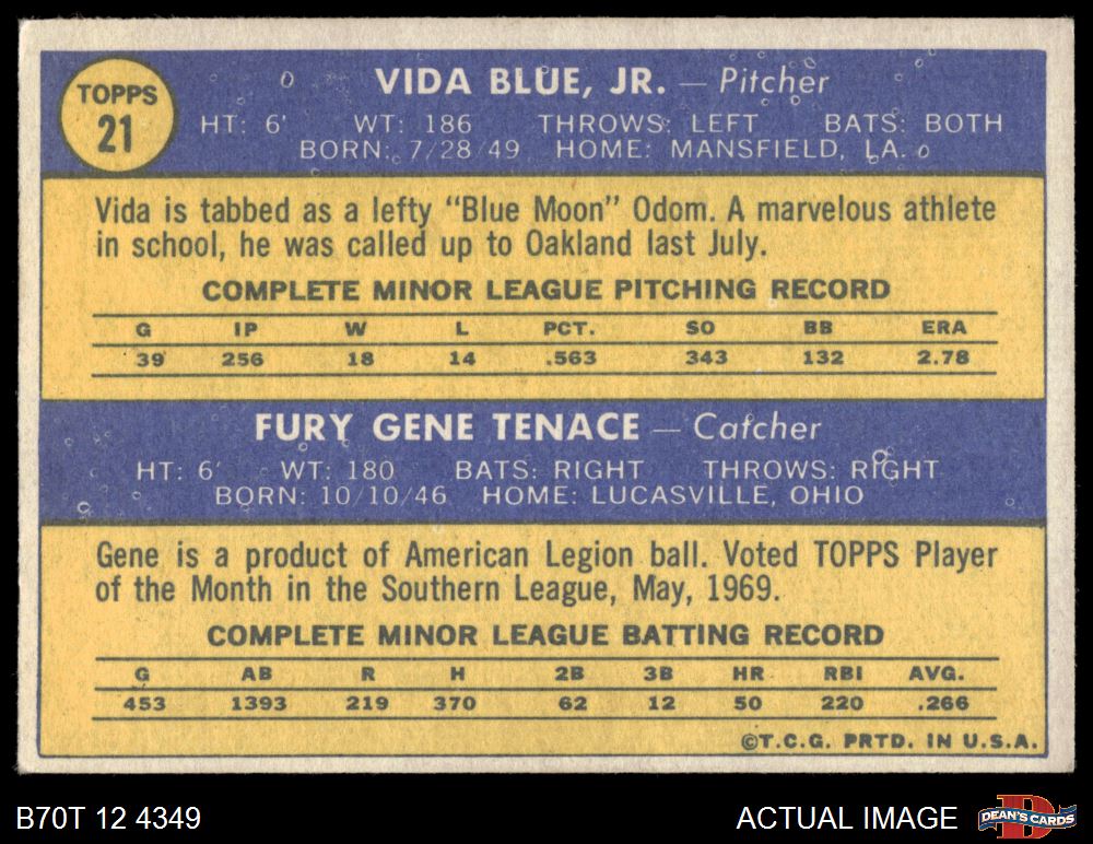 1970 Topps #21 - Vida Blue / Gene Tenace Athletics Rookies 4.5 - VG/EX+