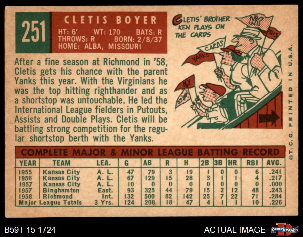 1959 Topps #251 Clete Boyer 5.5 - EX+