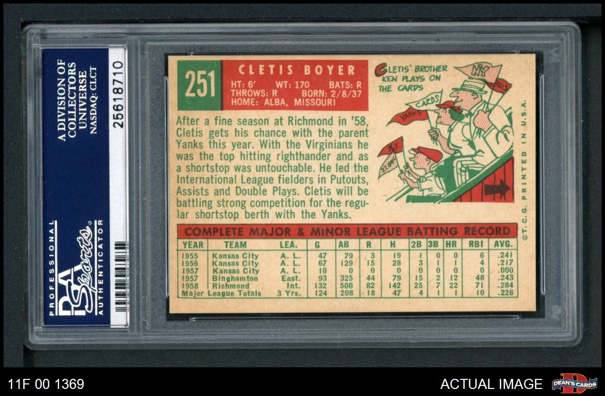 1959 Topps #251 Clete Boyer PSA 8 - NM/MT
