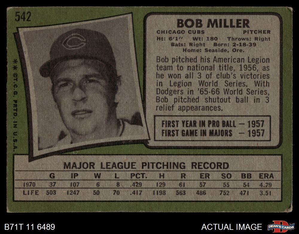 1971 Topps #542 Bob Miller 3 - VG