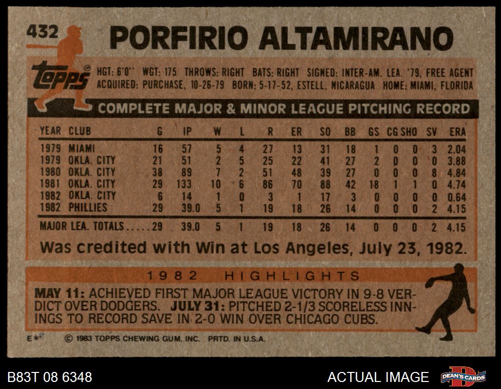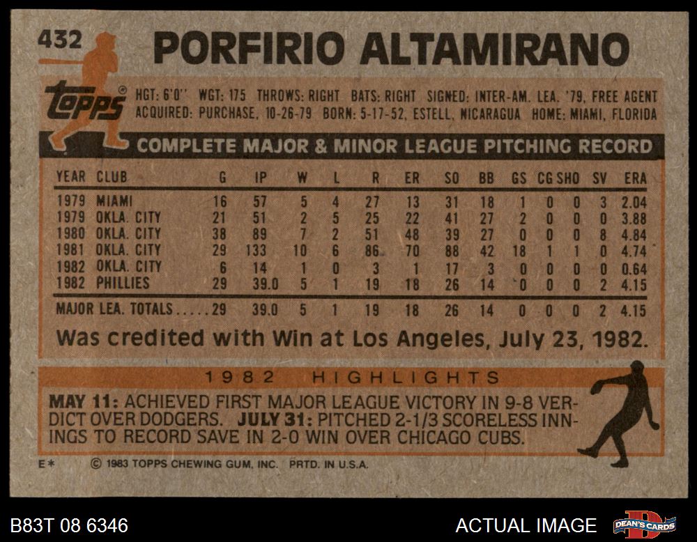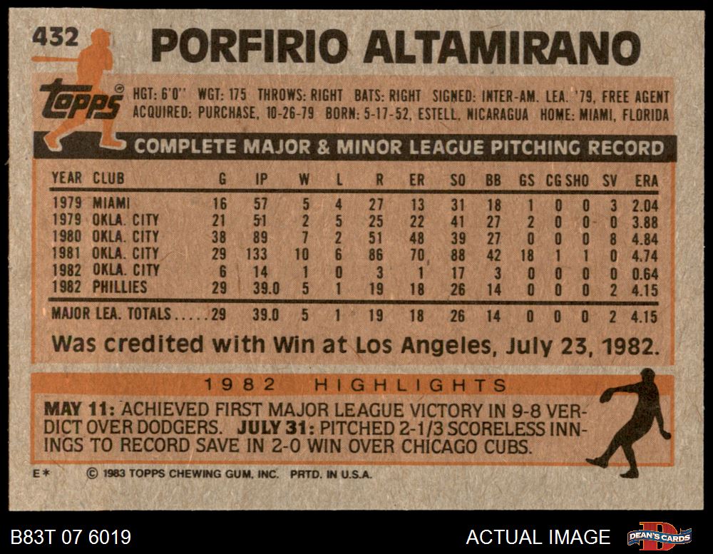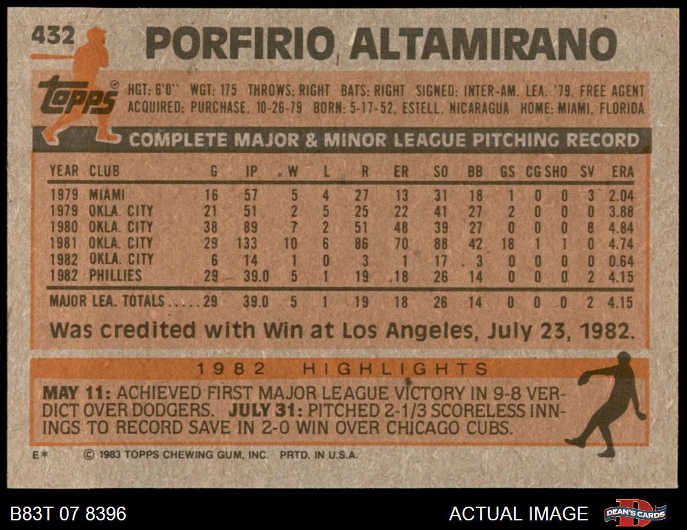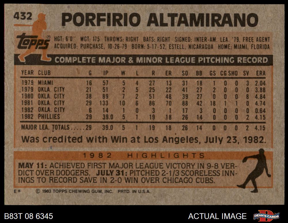 1983 Topps #432 Porfirio Altamirano 8 - NM/MT