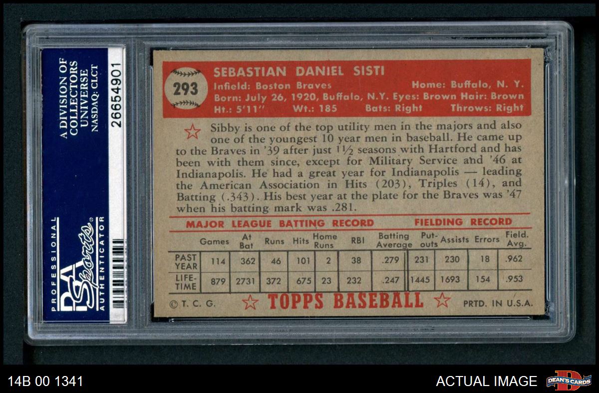1952 Topps #293 Sibby Sisti PSA 6 - EX/MT