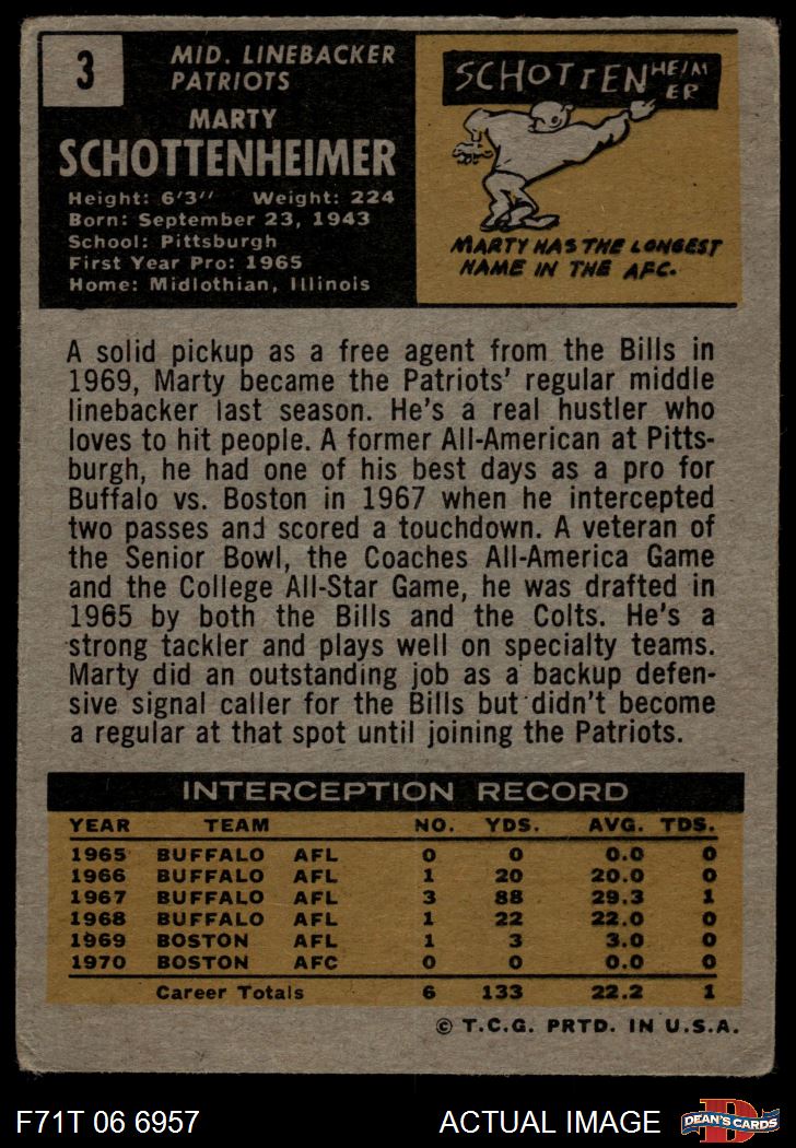 1971 Topps #3 Marty Schottenheimer 2 - GOOD