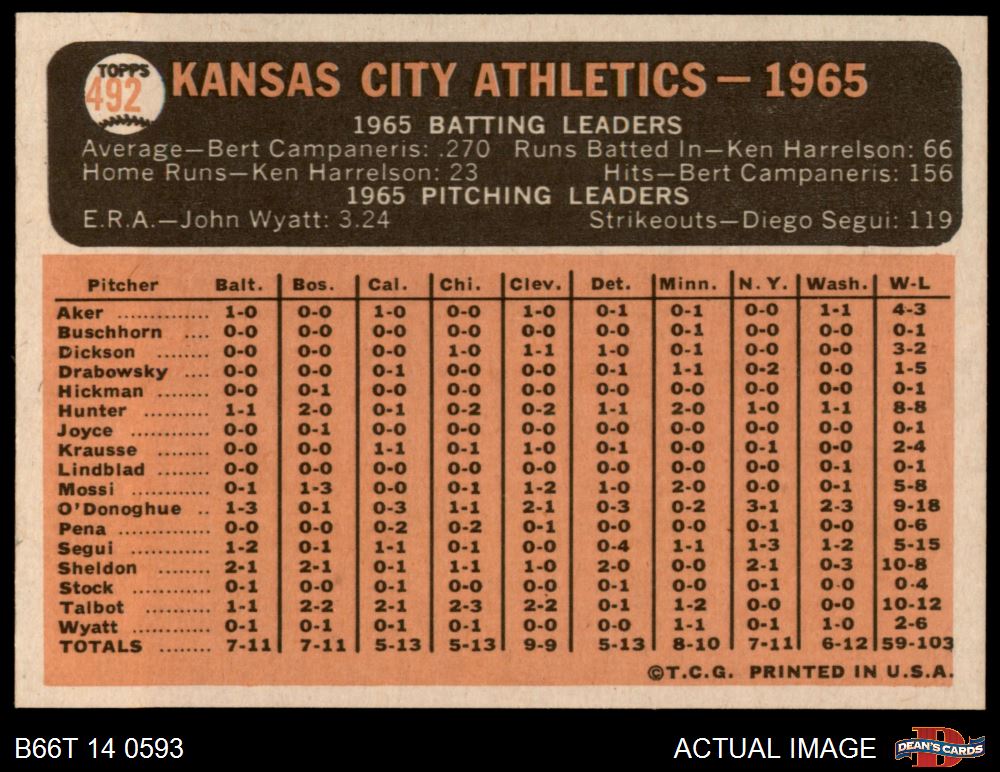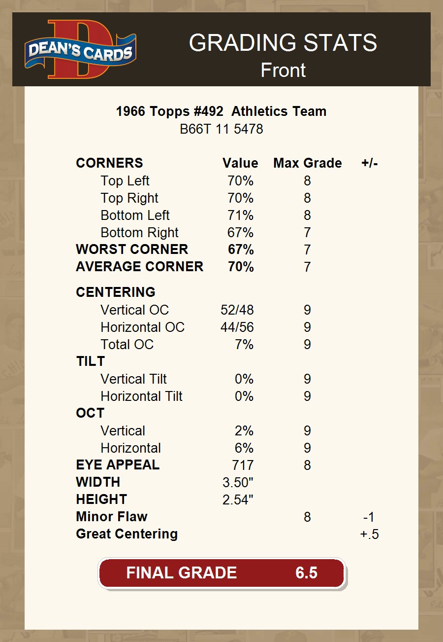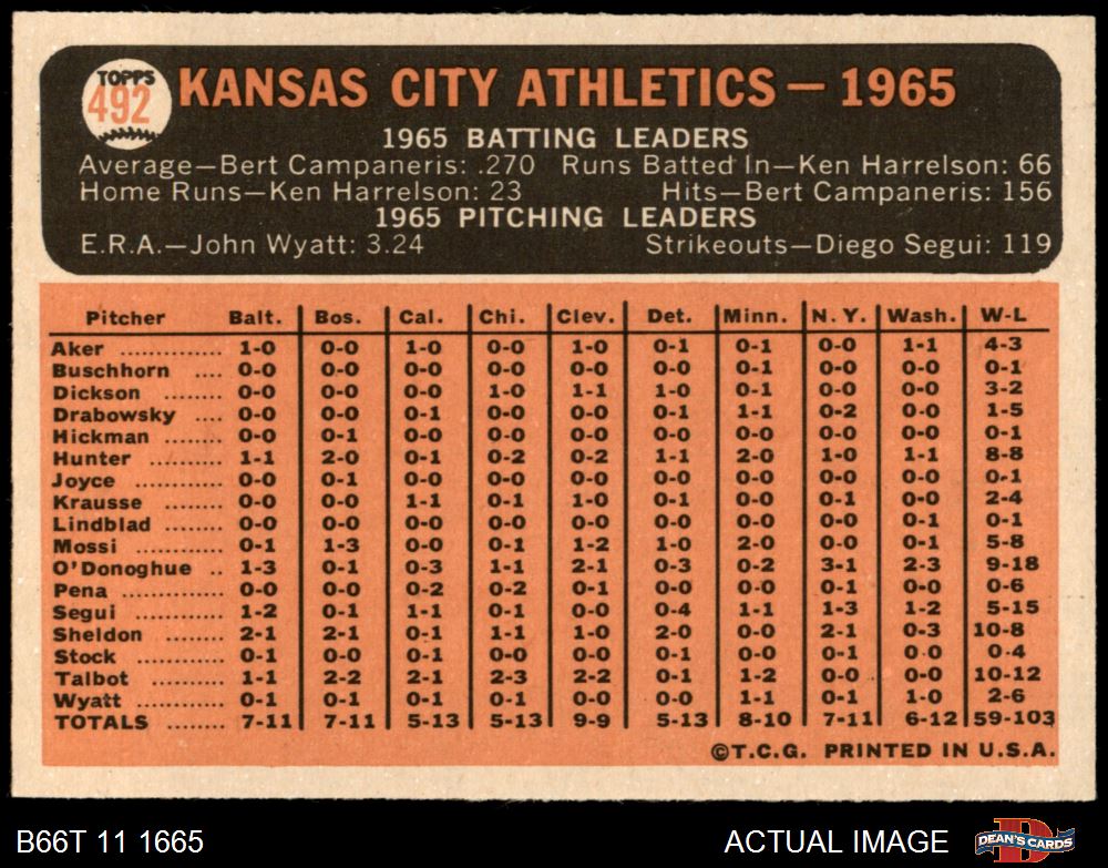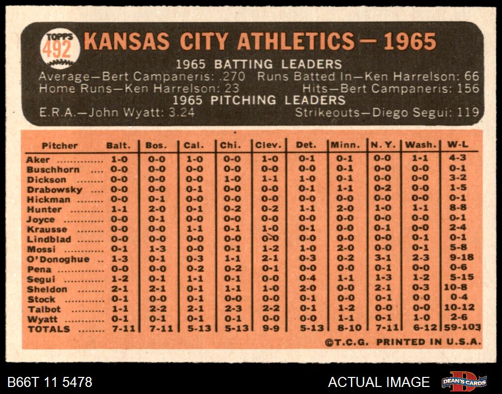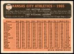 1966 Topps #492 Athletics Team 6.5 - EX/MT+