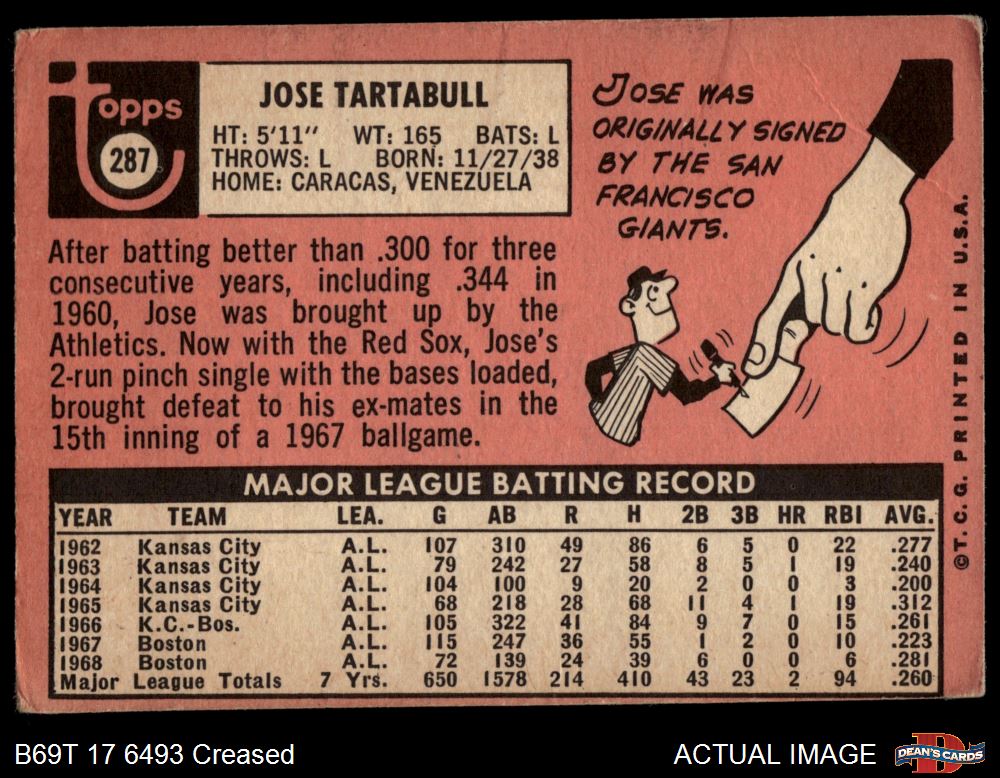 1969 Topps #287 Jose Tartabull