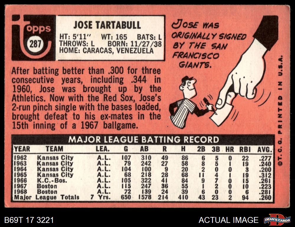 1969 Topps #287 Jose Tartabull 2 - GOOD