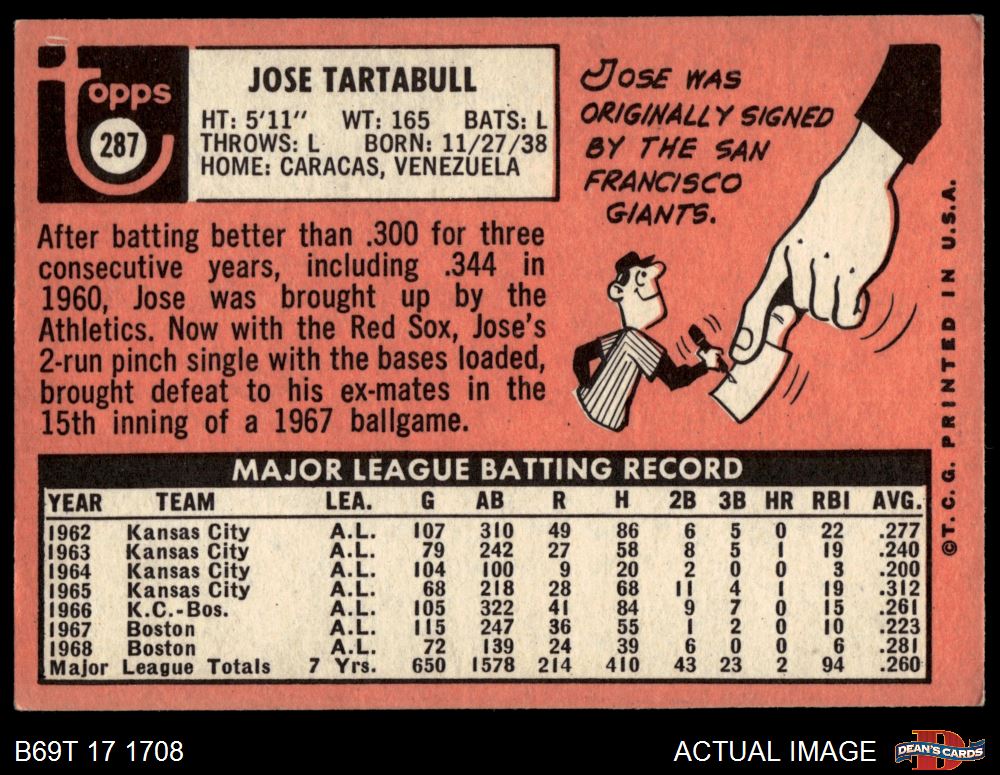 1969 Topps #287 Jose Tartabull 4 - VG/EX