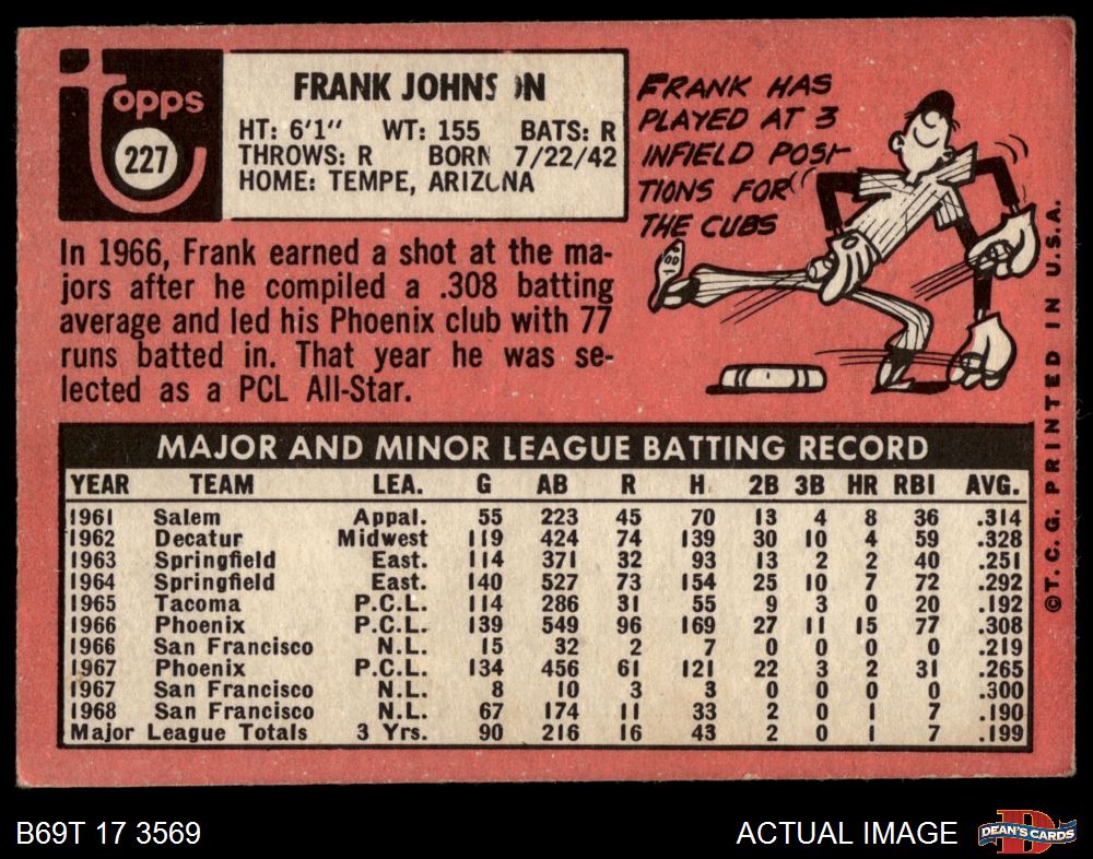 1969 Topps #227 Frank Johnson