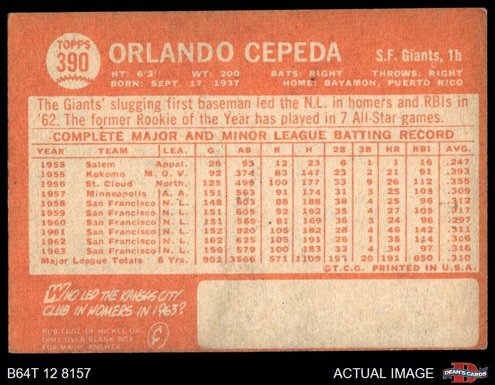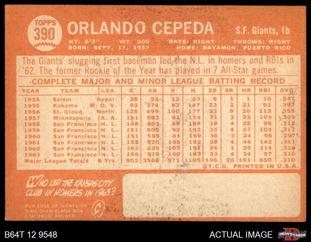 1964 Topps #390 Orlando Cepeda 3 - VG