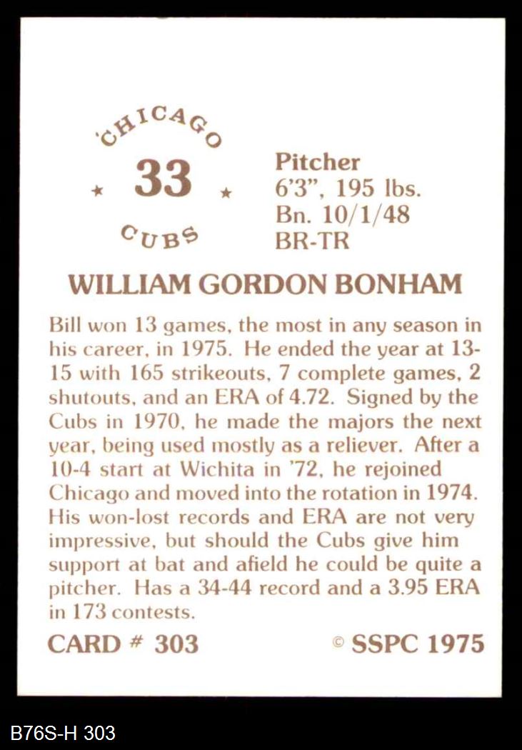 1975 SSPC #303 Bill Bonham