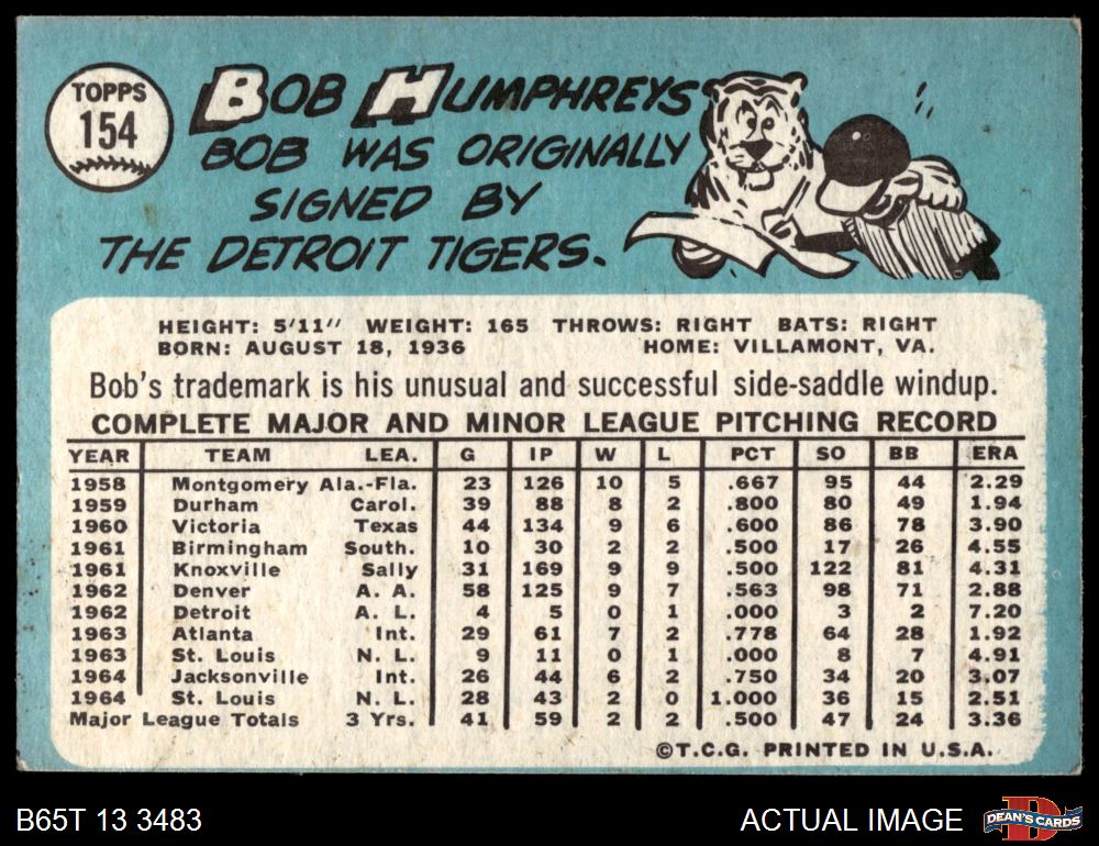 1965 Topps #154 Bob Humphreys 1.5 - FAIR