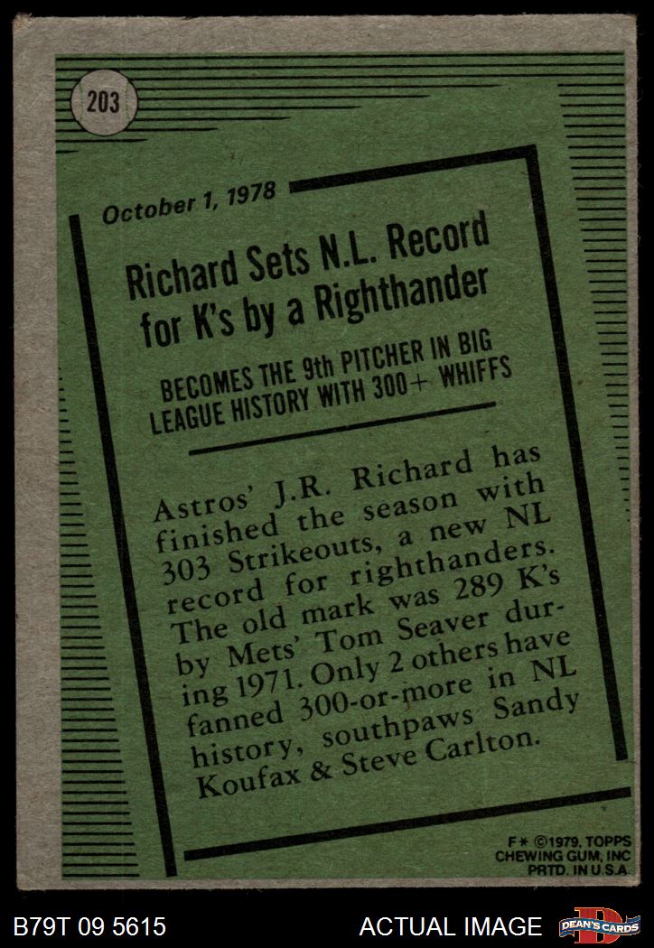 1979 Topps #203 - J.R. Richard Record Breaker 1.5 - FAIR