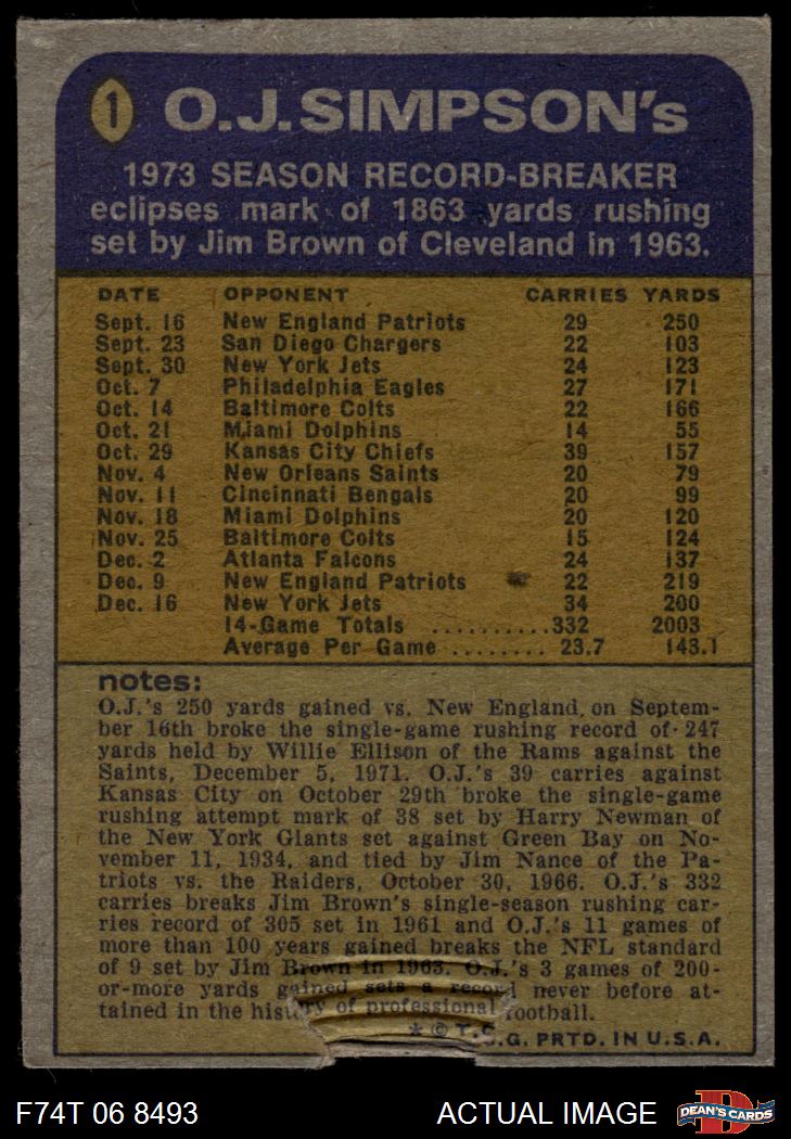 1974 Topps #1 - O.J. Simpson Record Breaker 1 - POOR