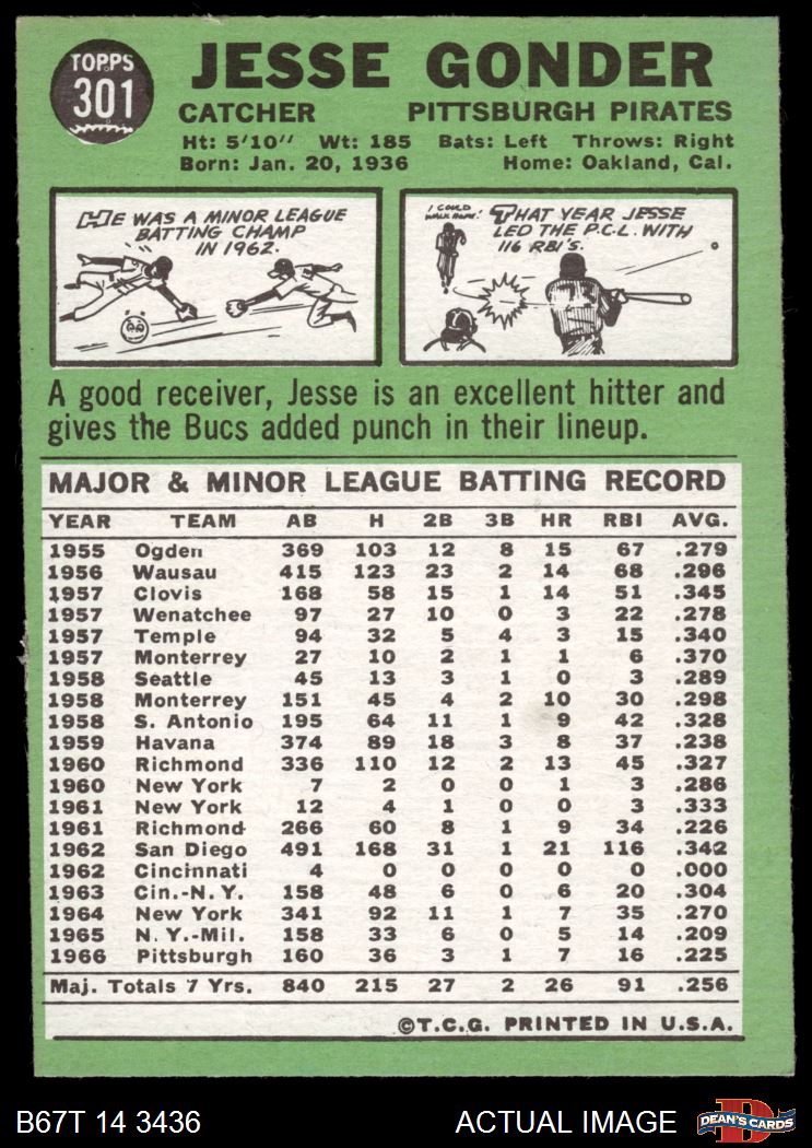 1967 Topps #301 Jesse Gonder 4 - VG/EX