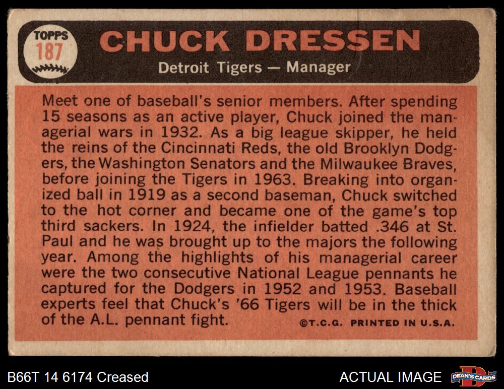 1966 Topps #187 Chuck Dressen