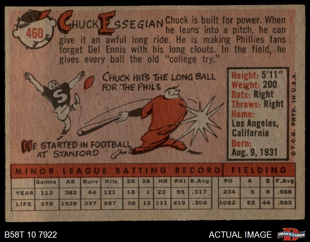 1958 Topps #460 Chuck Essegian 4 - VG/EX