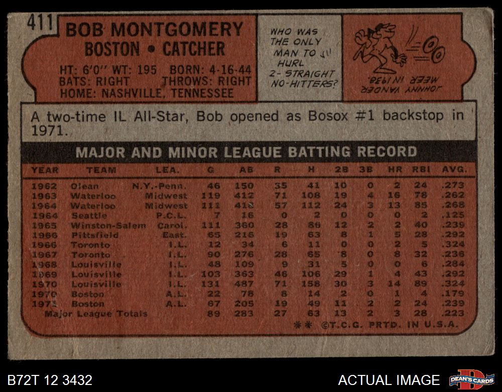1972 Topps #411 Bob Montgomery 1.5 - FAIR