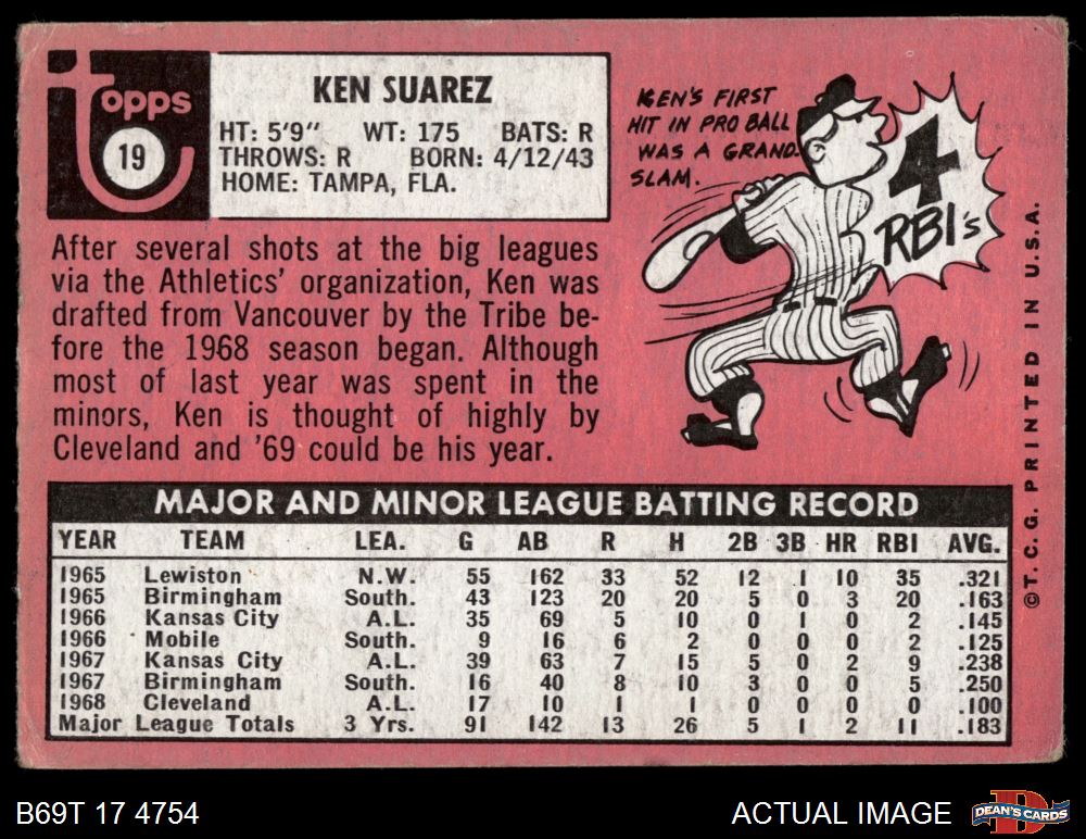 1969 Topps #19 Ken Suarez 1.5 - FAIR