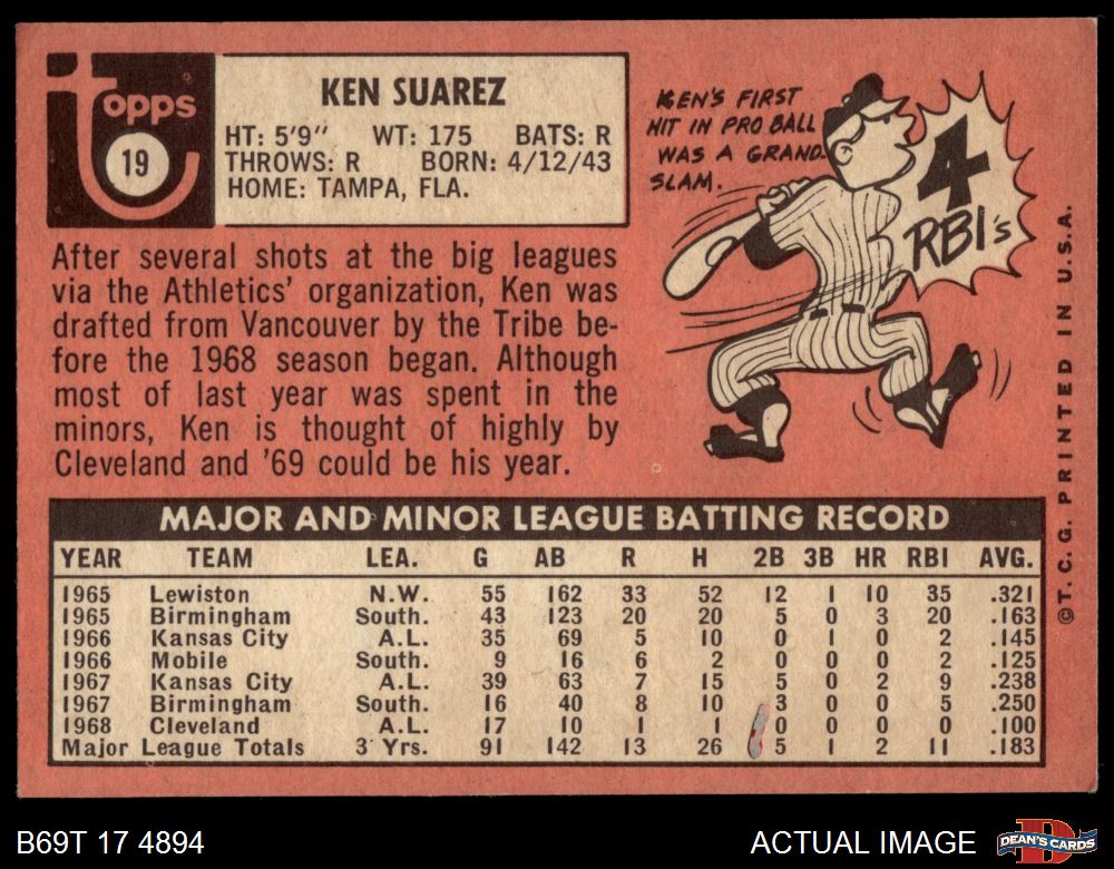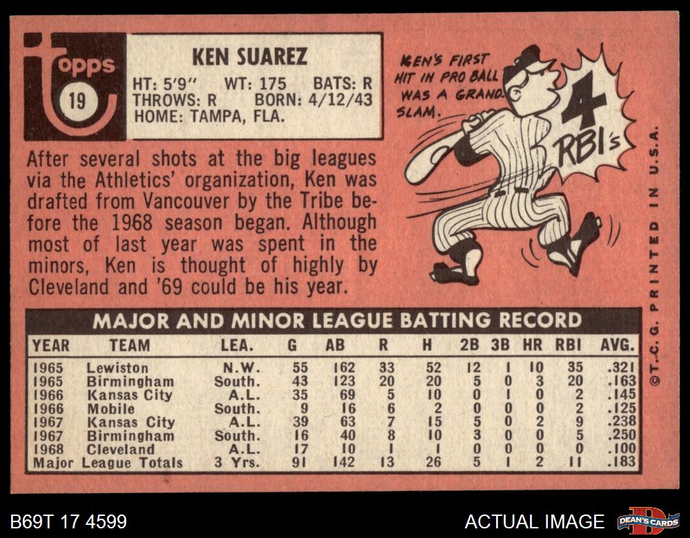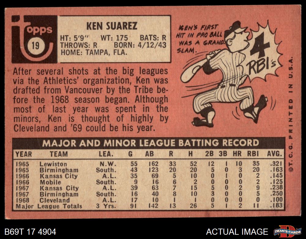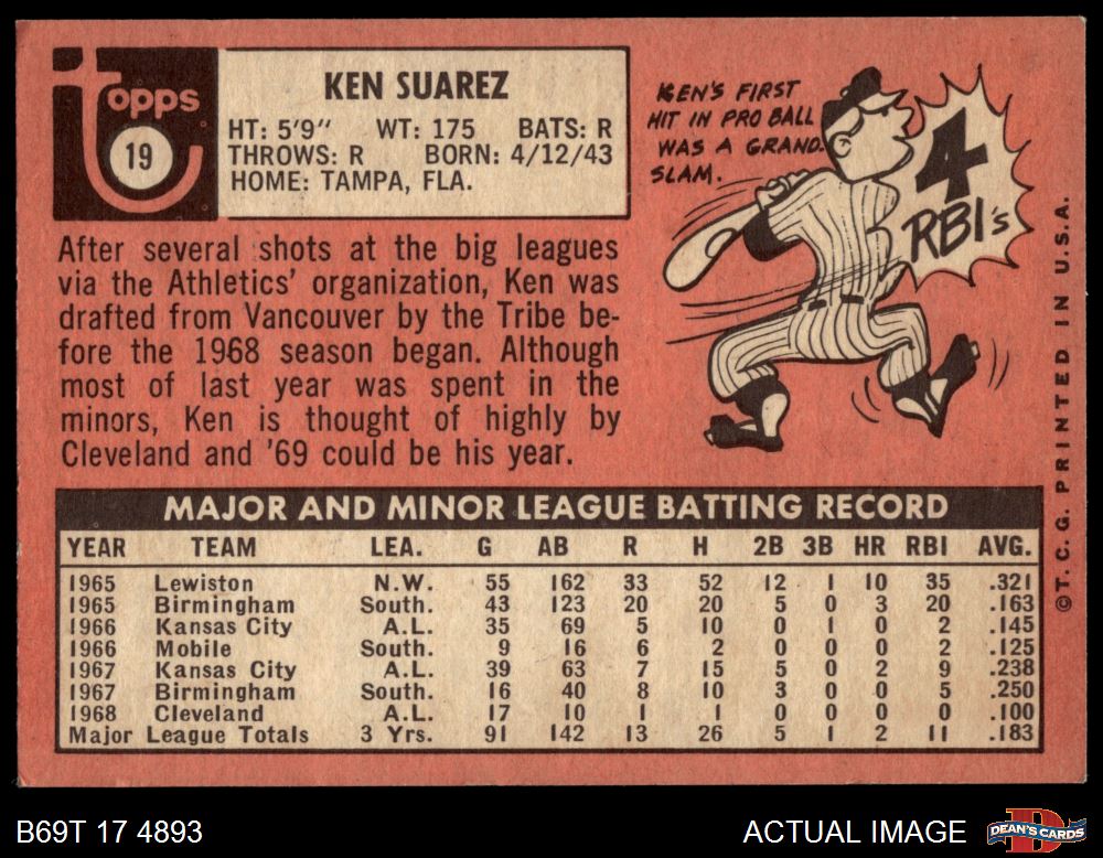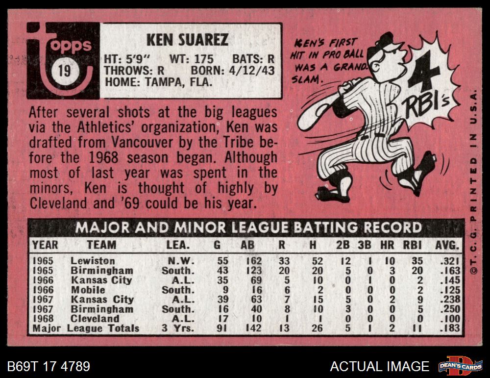 1969 Topps #19 Ken Suarez