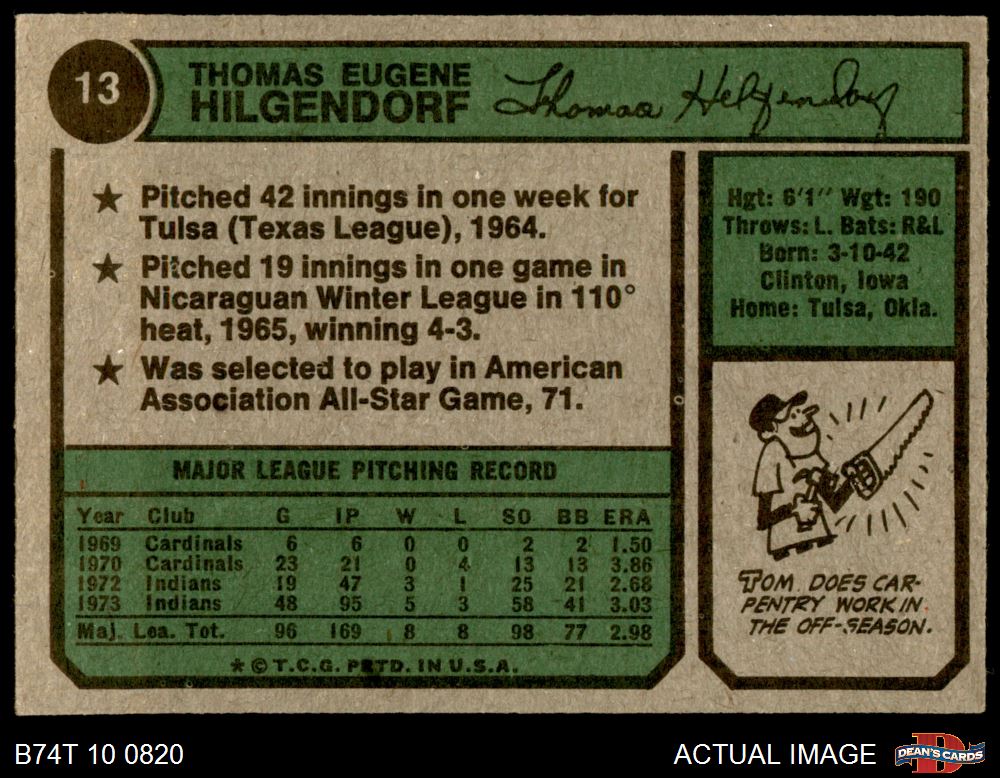 1974 Topps #13 Tom Hilgendorf 6 - EX/MT