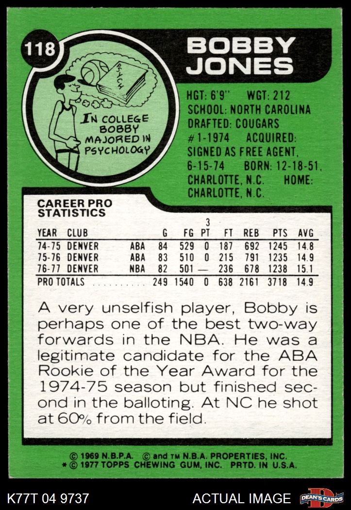 1977 Topps #118 Bobby Jones 5 - EX