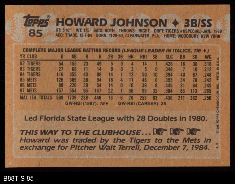 1988 Topps #85 Howard Johnson