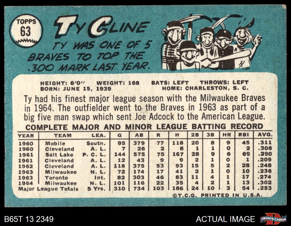 1965 Topps #63 Ty Cline 4.5 - VG/EX+
