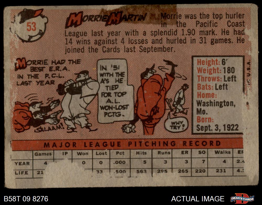 1958 Topps #53 WN Morrie Martin AUTHENTIC