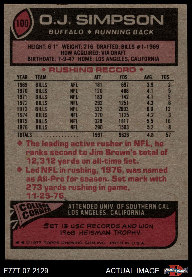 1977 Topps #100 O.J. Simpson 4 - VG/EX