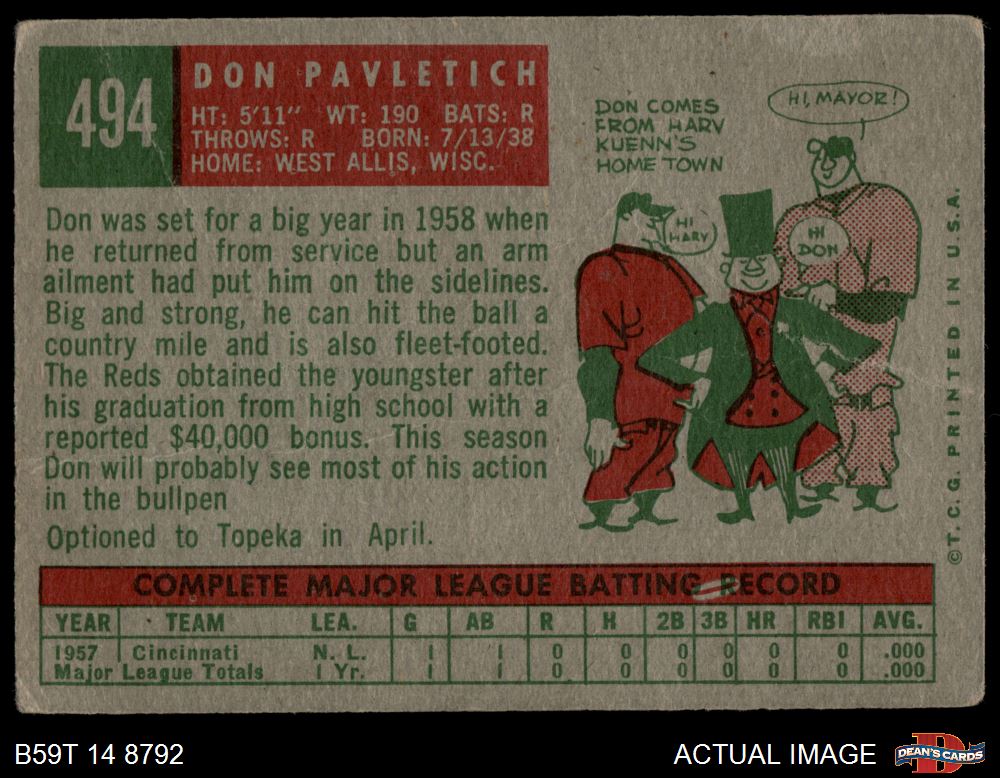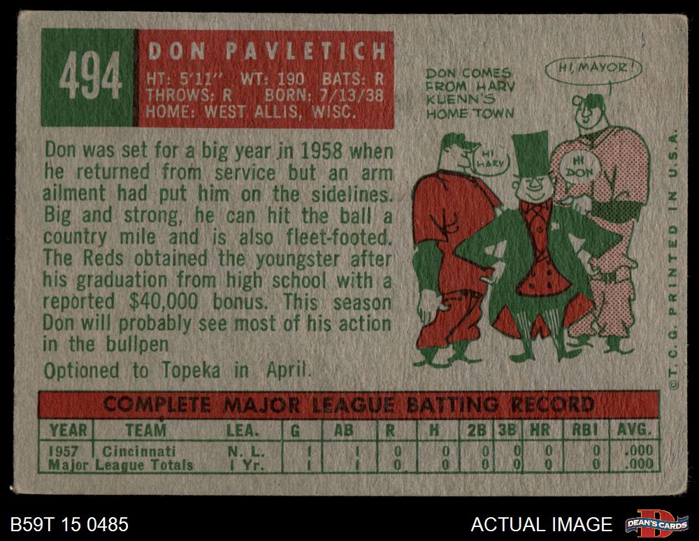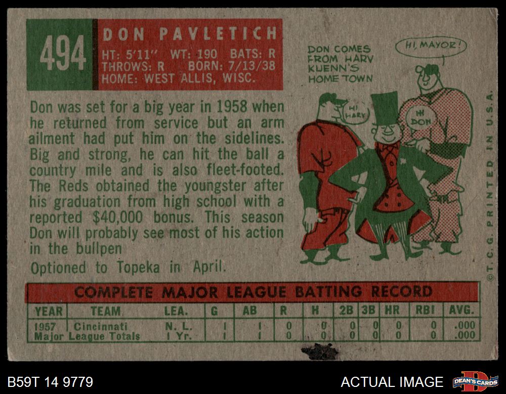 1959 Topps #494 Don Pavletich 1.5 - FAIR