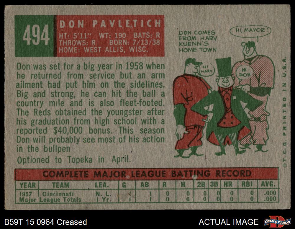 1959 Topps #494 Don Pavletich Front Thumbnail
