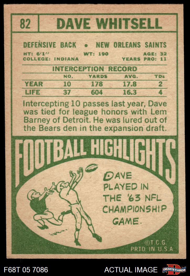 1968 Topps #82 Dave Whitsell 6 - EX/MT